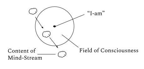 In their book, The Primal Wound, John Firman and Ann Gila describe this visually. Imagine that your removed sense of I-am is a singular dot in the middle of a larger circle. This larger circle is your entire field of conscious awareness. From the vantage point of the center objects may come into your field of awareness or emotions and thoughts may enter from within as well. However, they will always pass through and your core sense of self will remain detached from them.